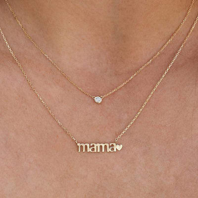 Τρέντυ 18K Χρυσό επιχρισμένο 925 Sterling Ασημένιο απλό MAMA Heart περιδέραιο για την Ημέρα των Κυριών